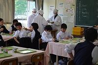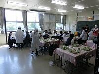 1年生の給食の様子です。入学当初に比べると、だいぶ手際がよくなってきました。