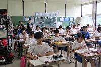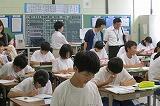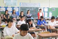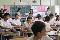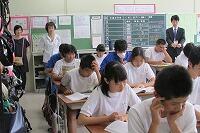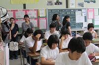 1年生が小学校6年生時の担任の先生方に、1年生の授業を見ていただきました。生徒も先生方もうれしそうでした。