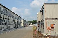 体育館の耐震工事が始まります。体育館周囲に仮囲いができました。