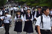 修学旅行1日目は天候にも恵まれ、楽しく過ごせました。古都奈良の歴史を肌で感じ、たいへん興味深そうにガイドさんの案内に耳を傾けていました。