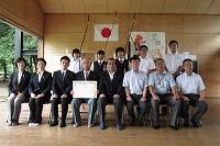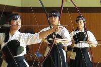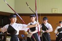 大平中学校では、9月から、全学年女子が、保健体育の授業で、弓道の授業を行います。その時に使う弓道具一式を全日本弓道連盟よりいただきました。