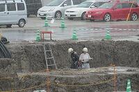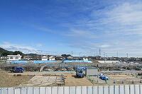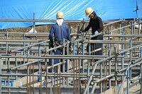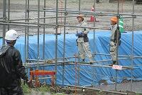 校舎建設が進んでいます。足場を設置し、鉄筋を組み立てています。