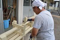 すばらしいベンチができました。教頭先生と外山先生がベンチに塗装をしていました。