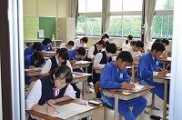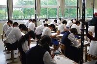 今日は全校登校日で、全学年実力テストを行いました。どのクラスも、集中して問題を解いていました。