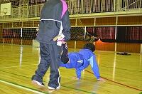 体育館では、女子バレーボール部とバドミントン部が練習に励んでいます。