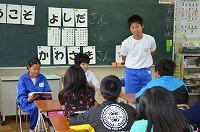 大平中学校の1年生が、大平東小学校と大平西小学校の2つに分かれて、授業交流会を行いました。