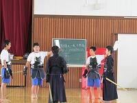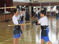 2校時、稲村先生が「気・剣・体の一致を意識した打突ができる」というねらいで保健体育の研究授業を行いました。