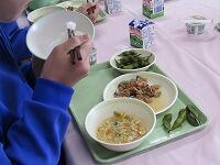 今日のメニューは、ご飯(栃木市産コシヒカリ)、豚肉のスタミナ焼き(栃木市産豚肉)、黒大豆枝豆(大平産黒大豆)、中華風たまごスープ、蔵の街ヨーグルト、牛乳でした。