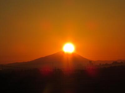 今朝、校舎3階から撮影しました。1年に2回見られますが、今朝のような快晴の日しか撮影できません。ダイヤモンド筑波とパール筑波です。