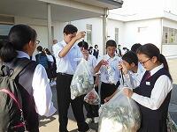 保健体育委員会と生徒会本部役員がアルミ缶回収を行いました。たくさんの生徒が,アルミ缶を持ってきてくれました。明日も行いますでの,ご協力をお願いします。