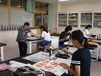 けやき学習会書道が2日目を迎えました。本日も,地域のボランティアの方を招いて,そのご指導のもと,生徒たちは書道の課題に取り組みました。