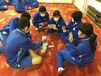 1日目は夕食後、立志式を行いました。本日2日目は夕食後「ふれあいタイム」という活動をしました。「ふれあいタイム」とはクラスの垣根を越えてカードゲームを通してコミュニケーションをとる活動です。