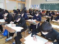3年生が最後の定期テストとなる学年末テストを行いました。今日,明日の2日間で実施します。誰もが集中して問題に取り組んでいました。
