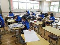 本日は修学旅行の2日目の予定をグループごとに検討しました。2日目は7~8人のグループで,ジャンボタクシーを利用し,京都市内研修を行う予定です。楽しみにしているようすが感じられます。