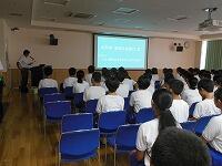 全校集会を多目的室で行いました。夏休み中の学習や生活についての話がありました。多目的室には空調設備があり,涼しい中で集会を行うことができます。