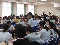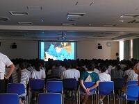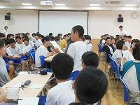 第1学期終業式を行いました。本校では,全生徒が入れる空調設備のある多目的室があり,猛暑の中ですが,涼しい環境で行うことができます。学校長の式辞に続き,各学年の代表の生徒が1学期の反省を発表しました。