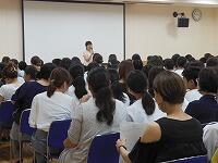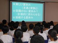 全校集会を多目的室で行いました。夏休み中の学習や生活についての話がありました。多目的室には空調設備があり,涼しい中で集会を行うことができます。