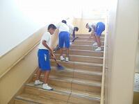 夏休みを迎えるにあたり,1学期使った校舎をきれいにするために,今週を清掃強調週間に設定しています。普段より清掃を5分長くして,日頃はできないところをきれいにしています。