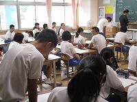 9月3日に実力テスト3教科を実施し,2教科は昨日実施する予定でしたが,台風による休校のため本日行いました。特に3年生はこれまで以上に集中して取り組んでいました。3年生のテストのようすです。