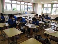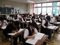 中間テスト2日目です。昨日に引き続き,一生懸命に問題を解いていました。