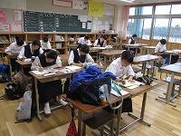 毎朝,何人もの3年生が始業前に早く登校し,自習室で学習を進めています。