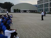 避難訓練を行いました。今回は火災を想定して行いました。また,消防署の方に来ていただき,煙道体験を行いました。体験した生徒からは,「昼間でも前が見えなくなるので,夜の火災では全く前が見えなくなり恐怖を感じます」という感想が多く出ました。
