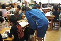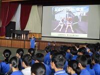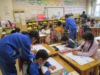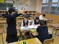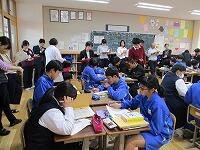 小中交流会として,中学1年生が小学校を訪れ,授業のお手伝いをしました。6年生のクラスでは,中学校生活についての質問に答えました。