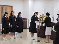11月21日(水)に栃木市市政功労表彰式があり,全国大会で優勝した女子弓道部のメンバーが表彰されました。
