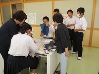 地域のボランティアの方々を招き,家庭科でチャコペンで縫いしろを記入する学習を行いました。多くのボランティアの方々に来ていただいたおかげで,一人ひとりの生徒に細かな点まで確認することができました。