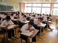 期末テストが始まりました。今年度は修学旅行の日程の都合で,今週は3年生,来週は1,2年生が期末テストを行います。3年生は問題を一生懸命解いていました。