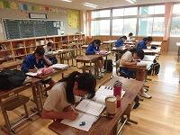 中間テスト2日目です。3年生のようすです。だれもが一生懸命問題を解いていました。