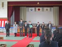 新任式を行いました。7名の先生方を紹介しました。また,代表生徒が歓迎の言葉を述べました。