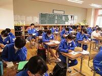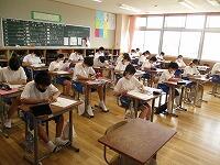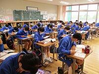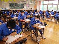 期末テストを実施しました。1年生にとっては初めての定期テストです。みんな一生懸命問題を解いていました。1年生のようすです。