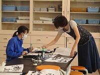 書写の授業のようすです。地域の方を講師に招き,丁寧に教えていただきました。