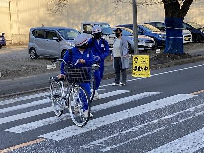 本年度から保護者の皆さんに、生徒のテスト期間に合わせて下校指導のお手伝いをいただいています。今回は、2月6日から9日までの4日間行いました。お手伝いいただいた保護者の方から「子どもたちがあいさつしてくれてうれしい。」等の言葉をいただきました。次年度も継続して実施する予定です。期間中は、学校の職員玄関に、横断旗や腕章を用意していますので、時間の都合の付く範囲でご協力お願いいたします。