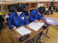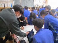 11月より準備してきた学校貢献活動を実施しています。今回は学年全員で取り組んだ「あいさつ運動」について紹介します。1月16日(金)~30日(金)までの期間、朝7:50~8:00まで昇降口に3年生が生活班ごとに立ち、後輩に向けて挨拶運動を全員で行いました。クラスごとにオリジナルのたすきを作り、これまでの生徒会や学級委員が行ってきた活動をバージョンアップさせて取り組みました。当番の日には早めに来て準備する姿も見られ、3年生として自覚と責任が表れていました。