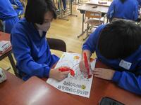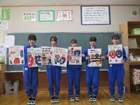 3年1組は「交通安全」と「あいさつ」を呼びかけるポスターを合計7種類作製し、大平総合支所・地域町づくり課に届けました。4月以降、大平町の公共施設を中心に掲示される予定です。