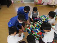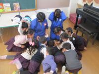 3年2組は「おおひらふじ幼稚園」に行きました。そこで幼児とふれあい、じゃんけん列車やすごろく、かるた取り、お絵かきなどを一緒に行い、交流を深めました。