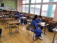 3年生が卒業式の練習を行っています。感染症対策をとりながら行っています。
