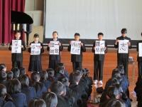 式後、第3学期学級委員長の任命があり、新しい各学級委員長が各クラスの目標を発表しました。