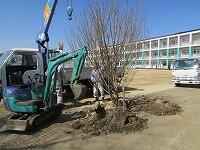 また、大平中学校同窓会(会長堀江泰寛様)と大和田英雄様のご尽力により、校庭の東側に、巴波桜3本と、神代桜1本が植えられました。この神代桜は山梨県実相寺の桜(日本三大桜の1つ)の種を大和田様が育ててものです。