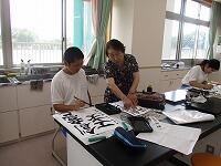 地域のボランティアの方を招いて,1年生の書道の授業を行いました。1クラスを2つの部屋に分け,少人数による丁寧な指導を行っていただきました。