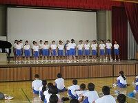 2年生が体育館で合唱コンクールのリハーサルを行いました。まだ練習を始めたばかりなので,どのクラスも完璧には仕上がっていませんでした。当日にはどれだけ伸びているか楽しみです。