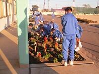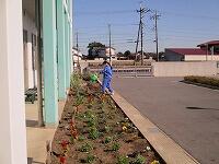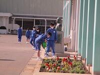 外で活動しやすい気候になり,多くの生徒が校庭で元気に体を動かしています。また,緑化委員の生徒は,花壇への水やりを行っています。