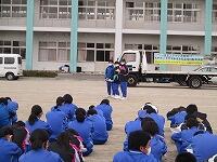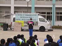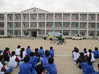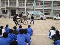 スケアードストレイト方式による交通安全教室を行いました。プロのスタントマンの方々が,自転車や自動車を使い,実際の事故を再現しました。迫力ある演技で,事故の怖さを実感することができました。
