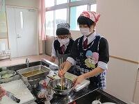 1年2組が調理実習を行いました。メニューは青菜のごま和え,具だくさんの味噌汁,卵料理です。不慣れな面もありましたが,協力して活動しました。