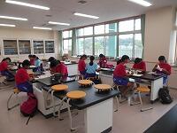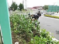 本日は雨のためダイヤモンドが使えず,校庭の水たまりのないところで練習を行いました。その後,学校の花壇で育てた,インゲン豆,枝豆,トウモロコシなどを収穫しました。