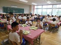 1年生の給食のようすです。本日は七夕にちなんだメニューでした。会話を楽しみながら味わっていました。