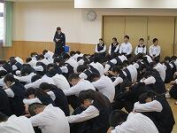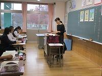 学区内小学校の読み聞かせボランティアの方々を招いて,各クラスで読み聞かせを行いました。生徒は落ち着いて聞いていました。
