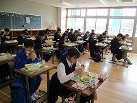 3年生のお昼休みのようすです。友達との会話を楽しんだり,入試に向けて勉強に励む生徒が見られます。